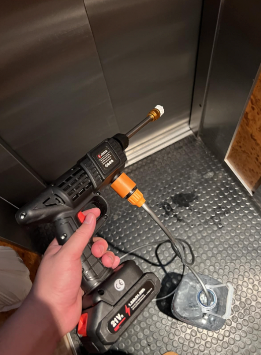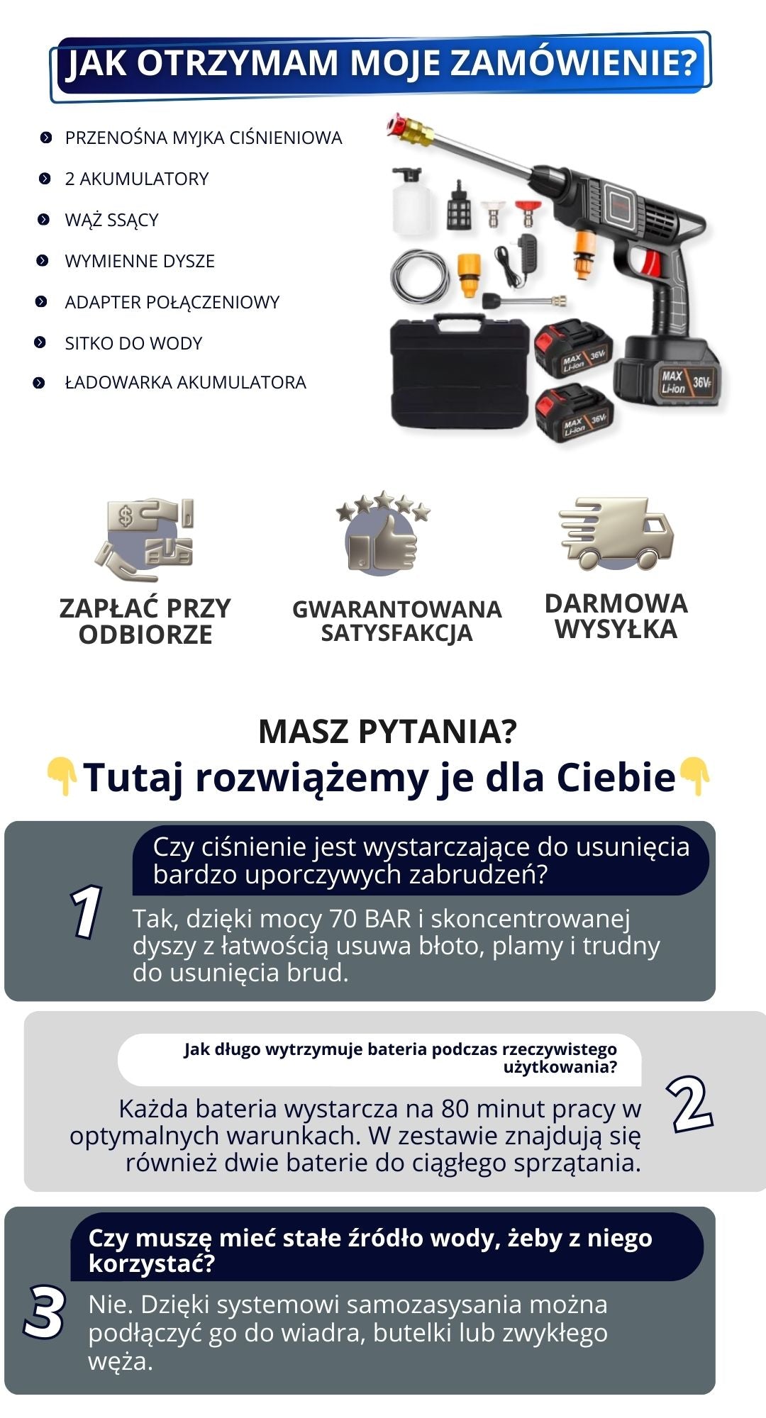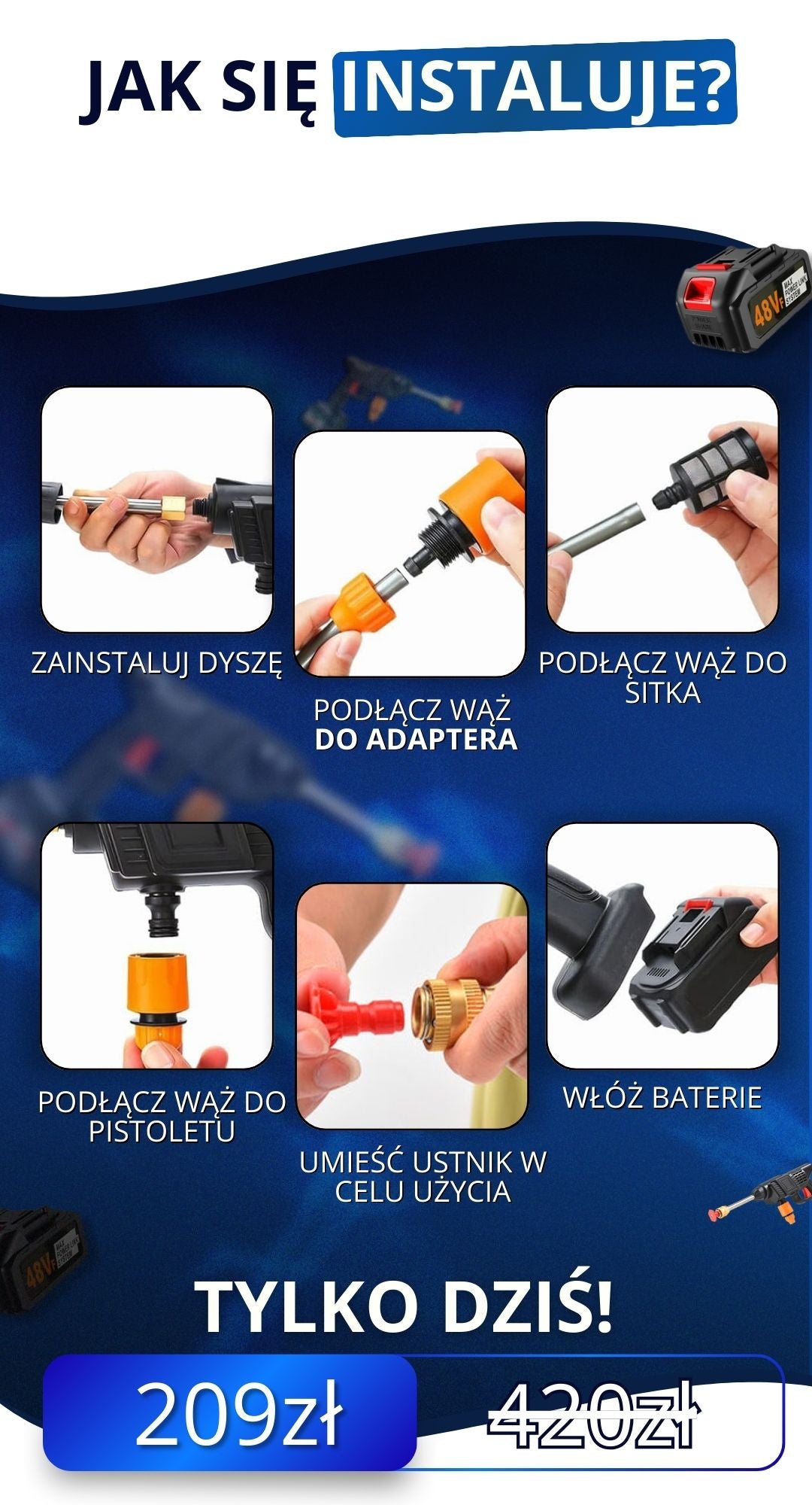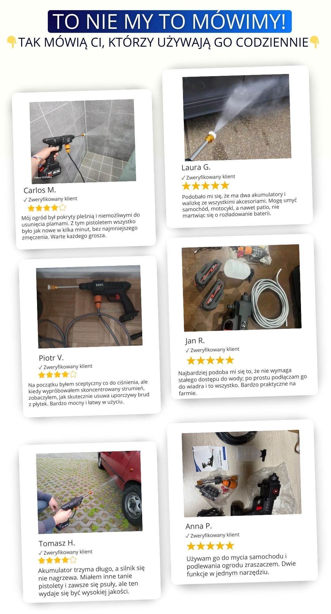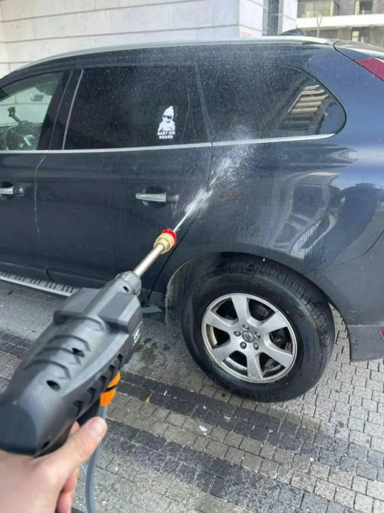Ciśnienie jest wystarczające do dużych prac. Bez problemu usuwa brud z podłogi na tarasie.